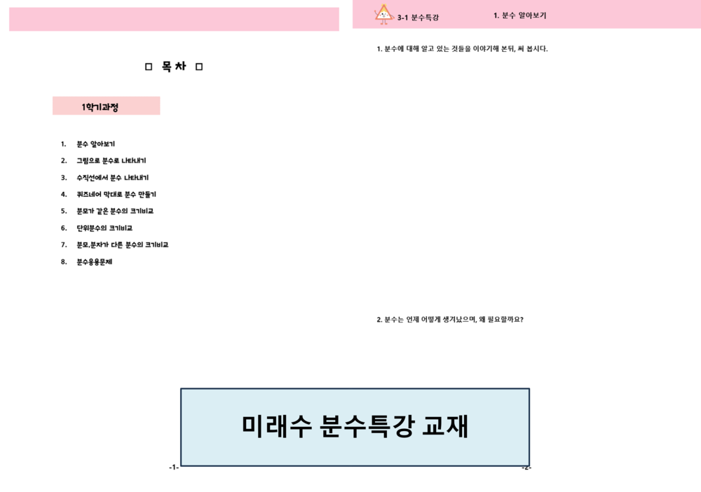 3학년 1학기 분수특강 교재입니다.