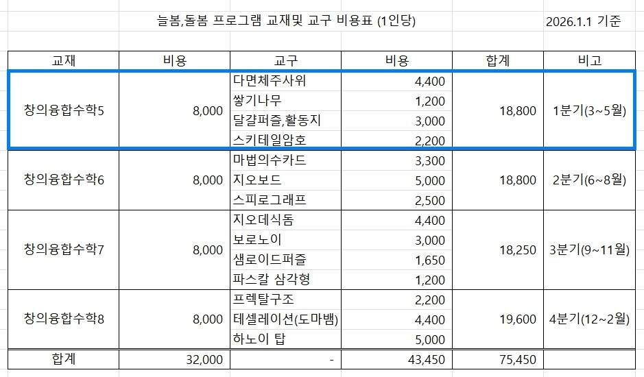 창의융합수학5(늘봄,돌봄 3개월 프로그램)
