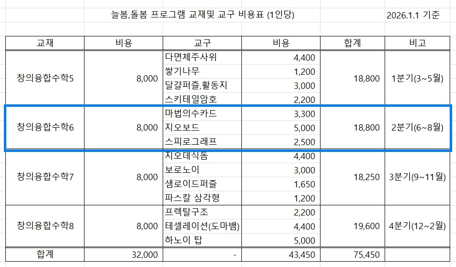 창의융합수학6(늘봄,돌봄 3개월 프로그램)